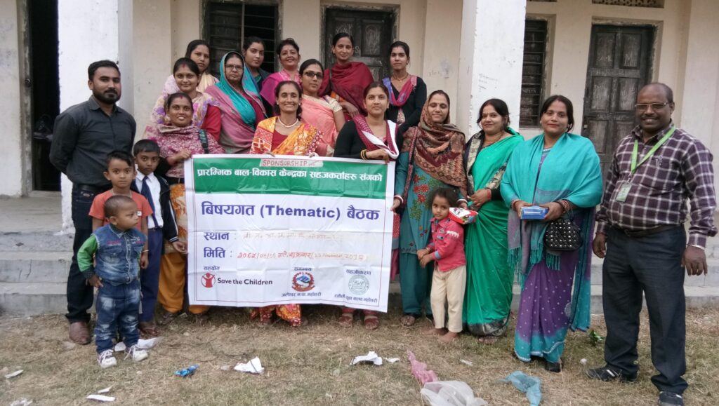 The program “Sammunati baal balika ko lagi” (Sponsorship) program has been conducting by Ratauli Yuwa Club (RYC) since August 2017 in support of Save the Children in Coordination of local government and others stakeholder of Jaleshwar municipality in Mahottari district. The project has been implementing in Jaleshwar municipality. This meeting was 5th Thematic meeting (ECCD Facilitators) and last meeting of the year 2018 had been conducted at Shree Mahendra Aadarsh Mahila Ma.Vi. Jaleshwar-1 on the date of 23rd November,2018. This type of meeting has conducted in mobile meeting methodology from beginning. So that it is called mobile meeting also and the event Thematic meeting (ECCD Facilitators) carried the objectives below: